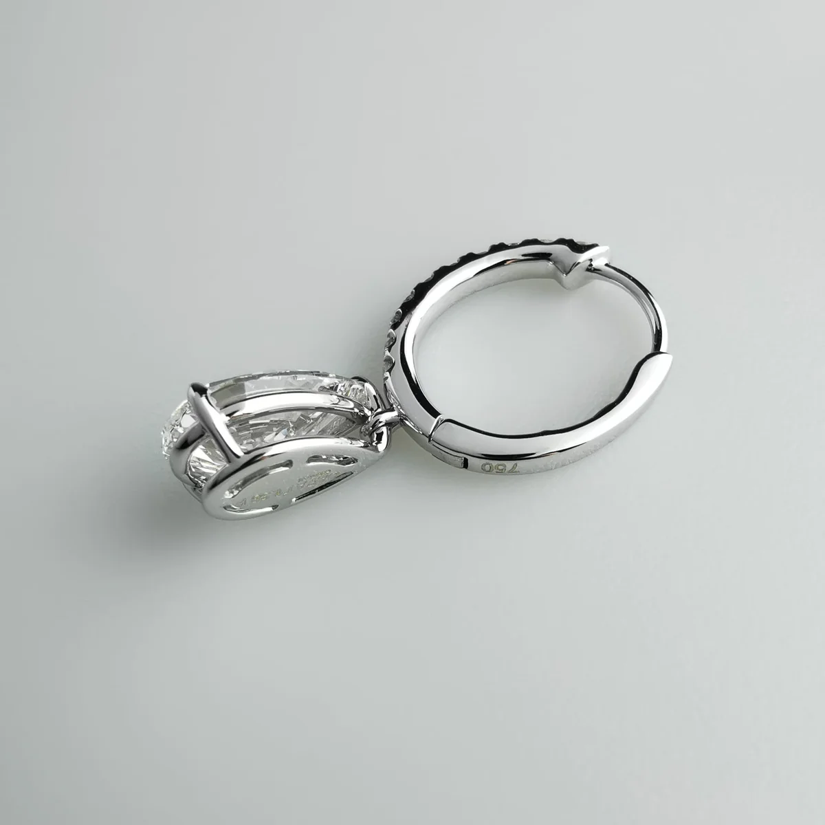 A symphony of light and elegance, Elysian is the ultimate expression of refined luxury. Each earring features a breathtaking 1.38-carat lab grown diamond (IGI-certified, F color, VS1 clarity), gracefully suspended from a delicate 18K white gold hoop adorned with 10 shimmering accent diamonds. With a total carat weight of 2.73 carats, these earrings exude brilliance from every angle.