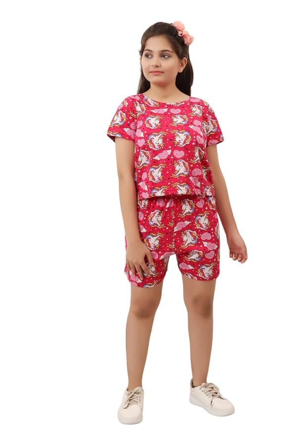 Step into comfort and style with our trendy Girls' Abstract Printed Coord Set, thoughtfully designed to blend fashion with functionality. This vibrant two-piece set includes a chic top and matching shorts, making it the perfect outfit for lounging at home, relaxing during the day, or even stepping out casually. The abstract print adds a fun, modern twist, making it a standout choice for girls who love playful yet stylish attire. Whether worn as a cozy nightsuit, a laid-back loungewear outfit, or casual daywear, this coord set offers versatile use for all-day comfort. Made from soft, breathable fabric, it ensures a gentle feel on the skin, ideal for warmer days or restful nights. The relaxed fit allows for easy movement, while the contemporary design keeps it effortlessly fashionable. Perfect for sleepovers, weekend relaxation, or just chilling in style, this printed coord set is a must-have addition to any girl's wardrobe.