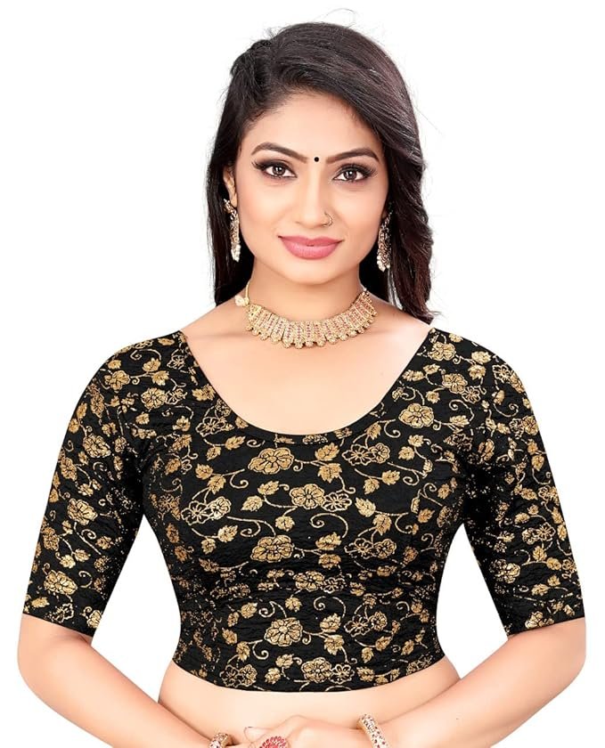 This stylish women's blouse features a classic round neck design that offers a timeless and flattering silhouette. Adorned with an elegant golden floral pattern, the blouse adds a touch of sophistication and charm, making it perfect for both casual outings and special occasions. The unique dubbel print enhances its visual appeal, creating a layered and textured look that stands out beautifully. Crafted with comfort in mind, the blouse comes with half sleeves, making it ideal for warmer weather or for layering under jackets and cardigans. Whether paired with jeans, skirts, or trousers, this versatile piece is sure to become a favorite in any wardrobe.