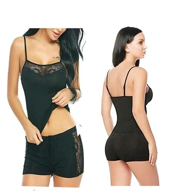Introducing our ultra-stylish and irresistibly sexy black nightwear set, designed to make every woman and girl feel confident, comfortable, and effortlessly glamorous. This alluring babydoll night dress combines elegance with a hint of playful charm, making it perfect for those special nights or simply lounging in style. The set includes a chic top paired with coordinating shorts or pyjamas, offering the ideal blend of sophistication and relaxed comfort. Crafted to fit a range of body types, this free-size ensemble comfortably accommodates waist sizes from 28 to 36 inches. Whether you're treating yourself or gifting it to someone special, this versatile night suit promises a flattering fit and eye-catching appeal. Perfect for women and girls who love to express their style even at home, this night dress set is your go-to for both relaxation and romance.